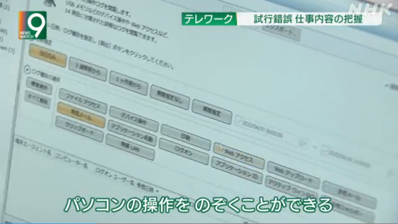 新型コロナウイルスの感染拡大を受け、テレワークを導入する企業が増える中、会社にいないため、働きぶりを直接、見ることができない社員の勤務時間や勤務状況を管理するシステムの導入が広がっています。