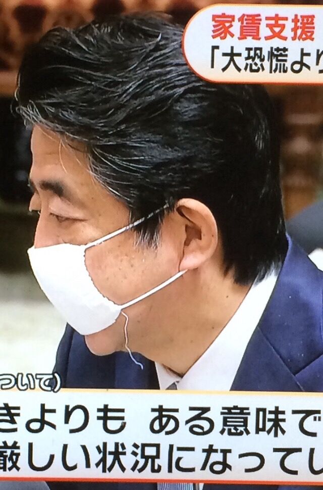 【悲報】安倍晋三さんのマスク、もう限界