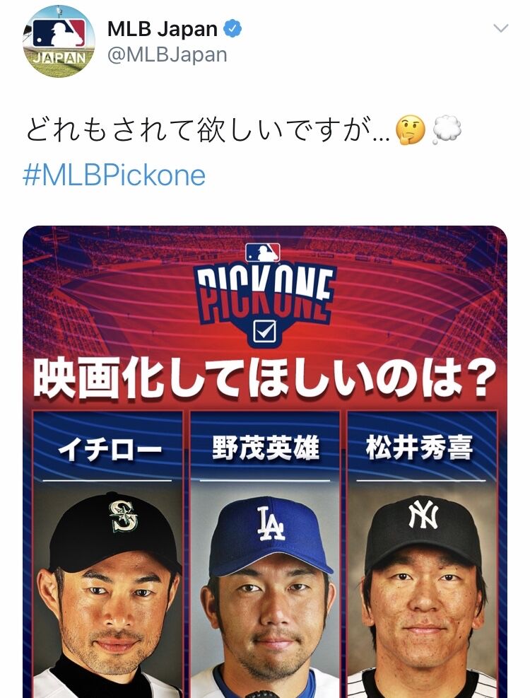 MLB Japan「イチロー・野茂英雄・松井秀喜 映画化してほしいのは?」