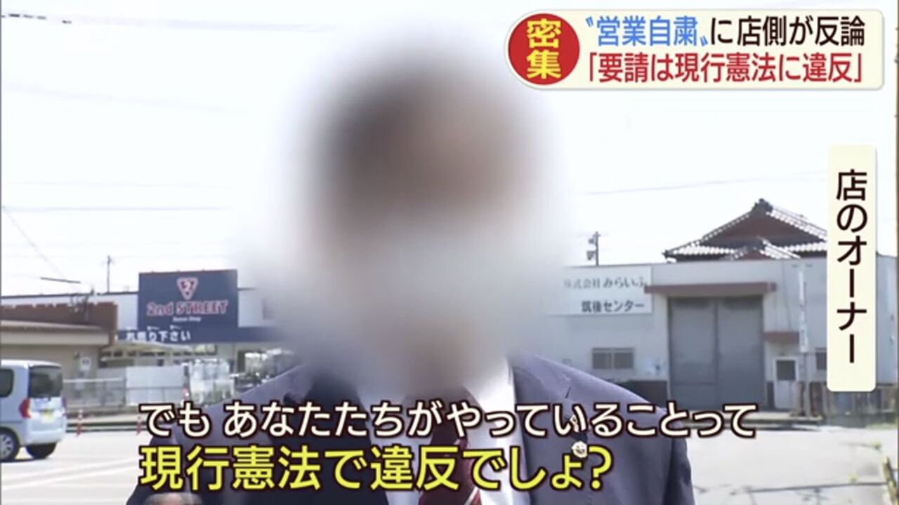 店のオーナー:「要請に対しては、(我々は)違反していますよ。でも、あなたたちがやっていることって現行憲法で違反でしょ?」