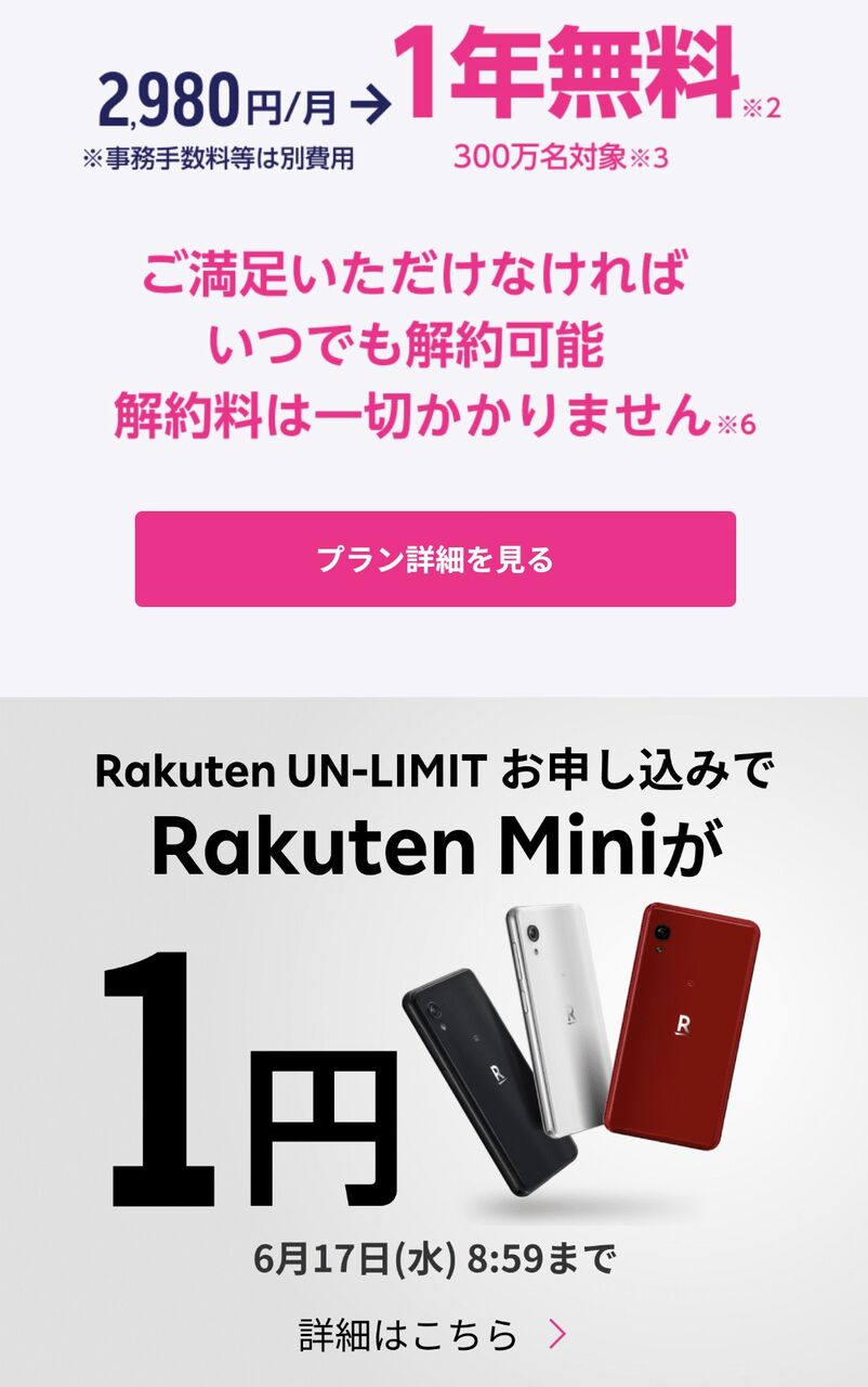 ※ 楽天モバイル、スマホ「Rakuten Mini」を1円で販売 容量無制限回線の1年間無料も継続中 “バラマキ”キャンペーンに踏み切った理由 – ITmedia NEWS