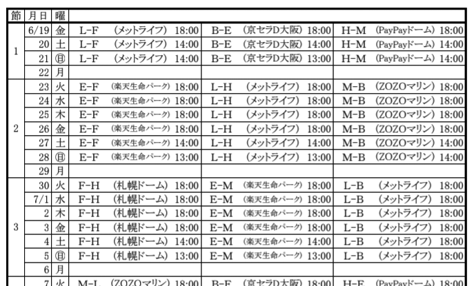 NPBが公式戦日程発表 パは6連戦決定mmemmemm