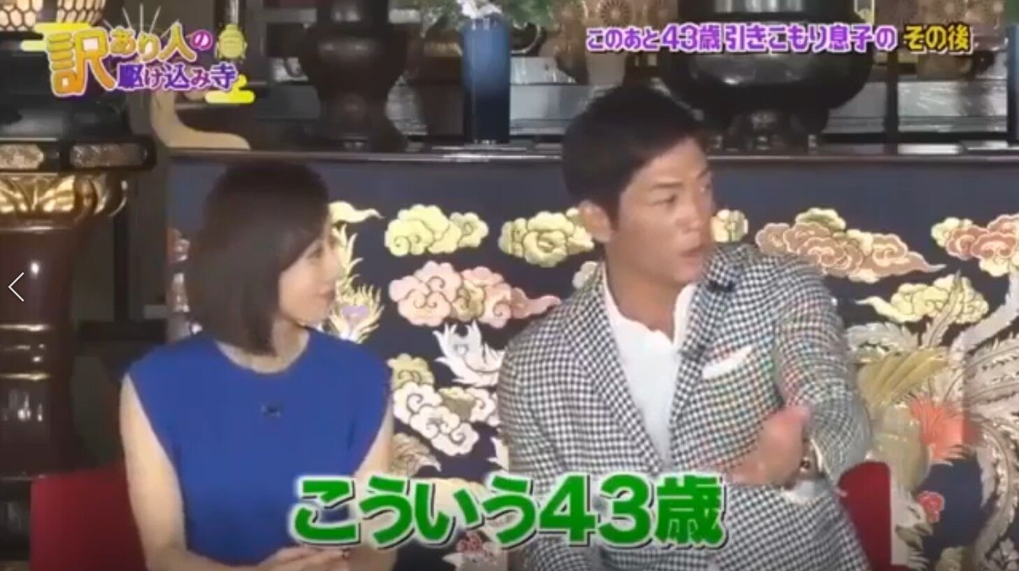 ※ 価格.com – 「訳あり人の駆け込み寺 ~母苦悩!引きこもり息子は43歳!衝撃DV男から夜逃げ!~」2018年8月19日(日)放送内容 | テレビ紹介情報