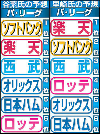 ※ 楽天勝たないとヤバイ/谷繁氏&里崎氏がパ順位予想 – プロ野球 : 日刊スポーツ