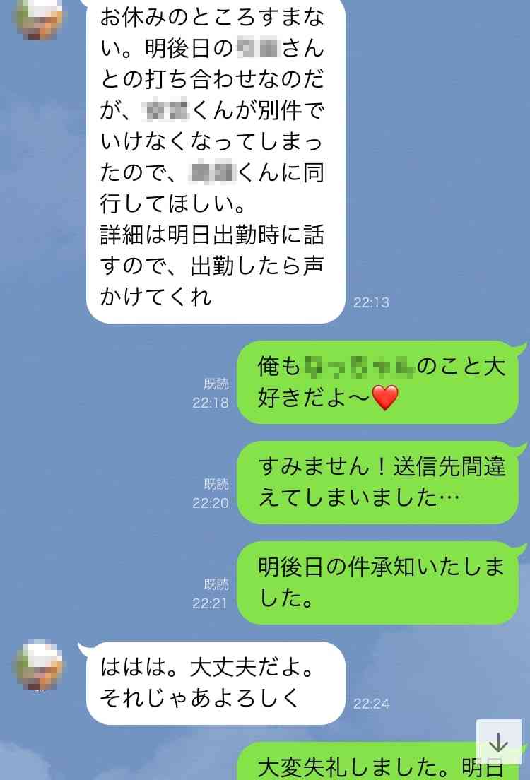 【画像】怖い上司に「大好きだよ~」とLINE誤爆したら、まさかの返信が→