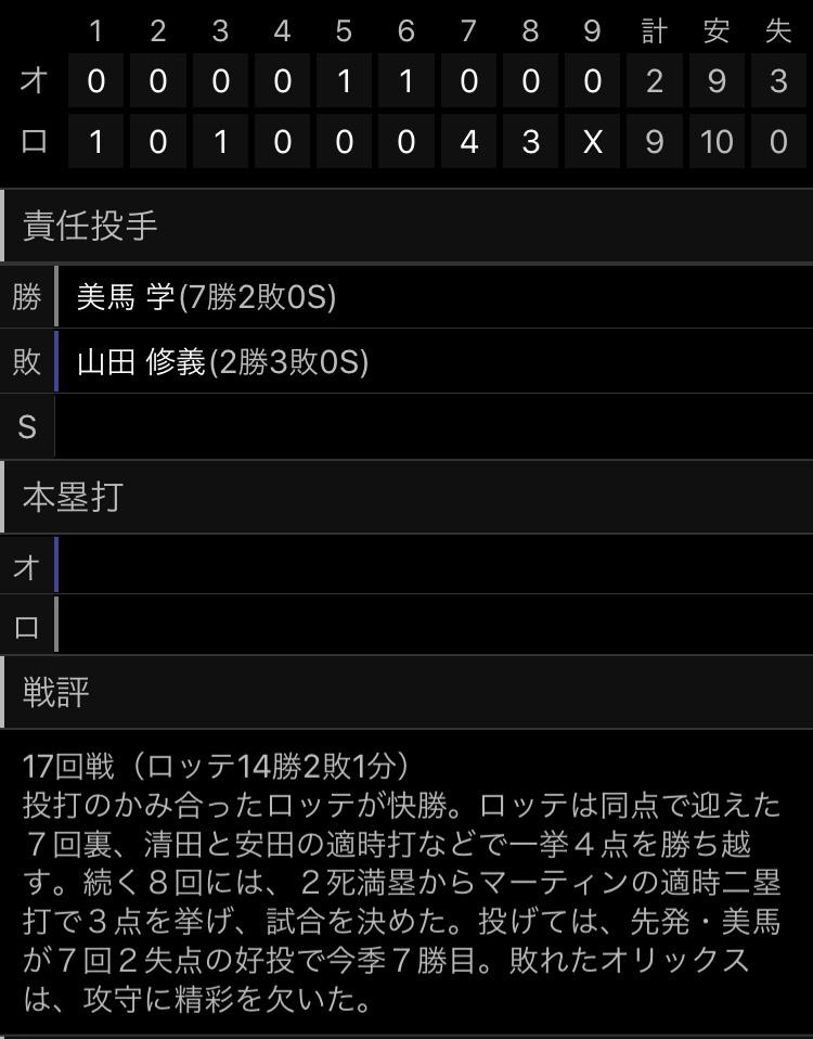 【悲報】オリックスさん、昨日で対ロッテ2勝14敗wwww