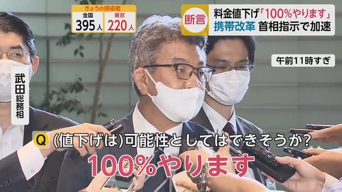 【朗報】政府「(携帯料金値下げは)100%やります」