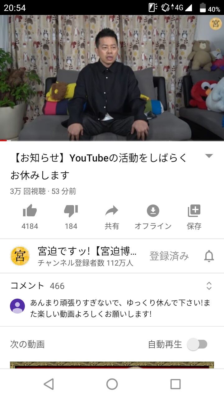 宮迫さん、YouTuber活動一時休止へ【夏休み】