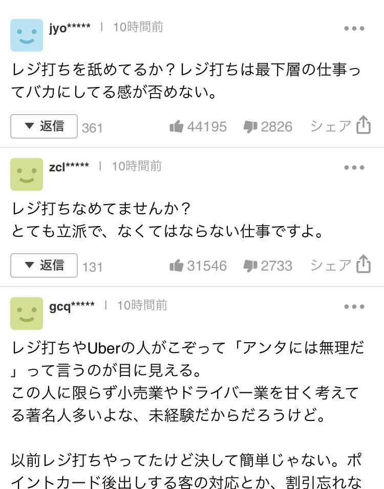 レジ打ちなんて近いうちに駆逐されるのに草