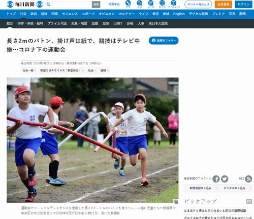虚構世界のニュースを伝える虚構新聞は28日、「2mのロングバトンも コロナ禍で『新しい運動会』 マキャベリ小」という記事が一部現実化してしまったとして謝罪。
