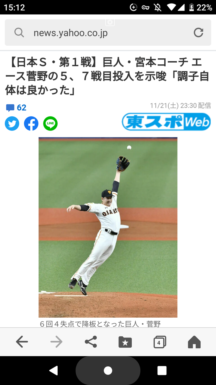 【朗報】巨人・宮本コーチ エース菅野の5、7戦目投入を示唆「調子自体は良かった」