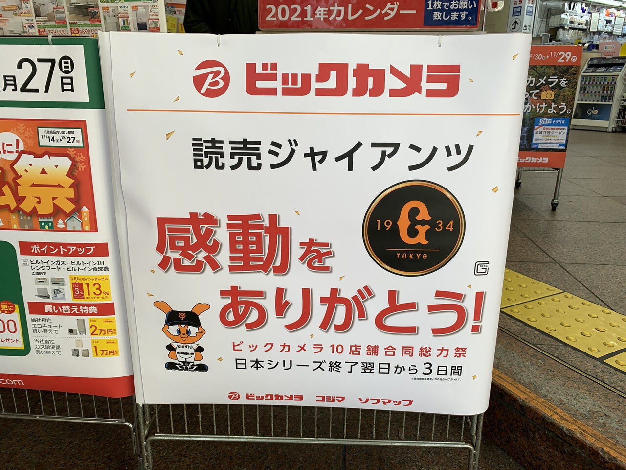 【朗報】ビックカメラ、読売ジャイアンツ感動ありがとうセール開催wwww