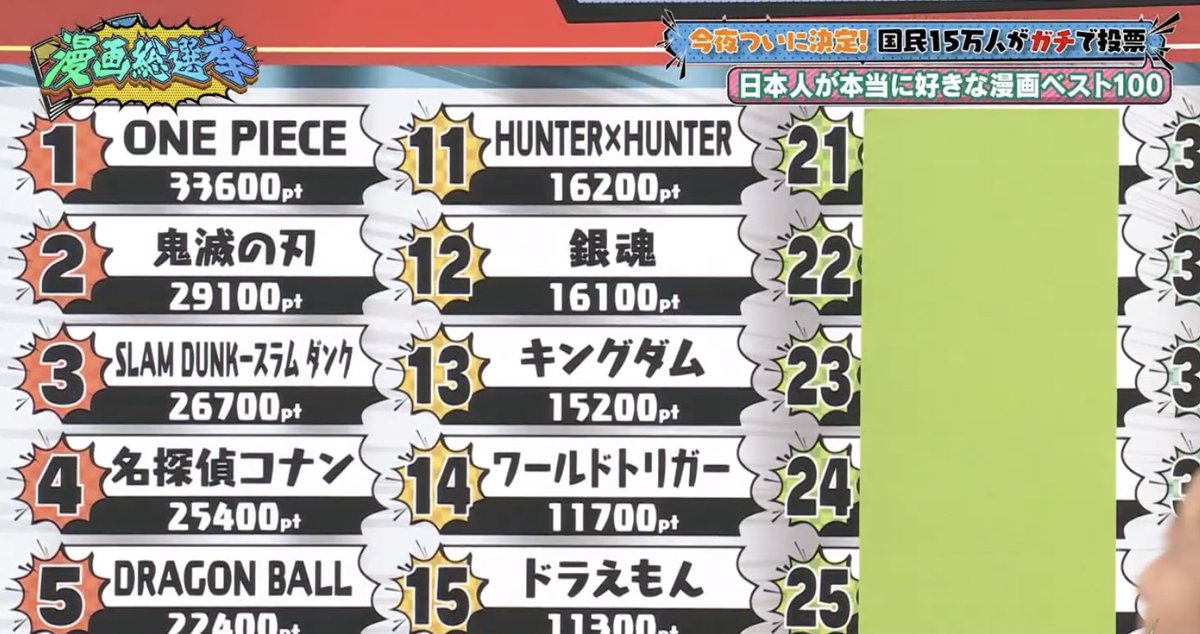 【漫画総選挙】15万人の漫画ファンが投票した結果wwwwwwww