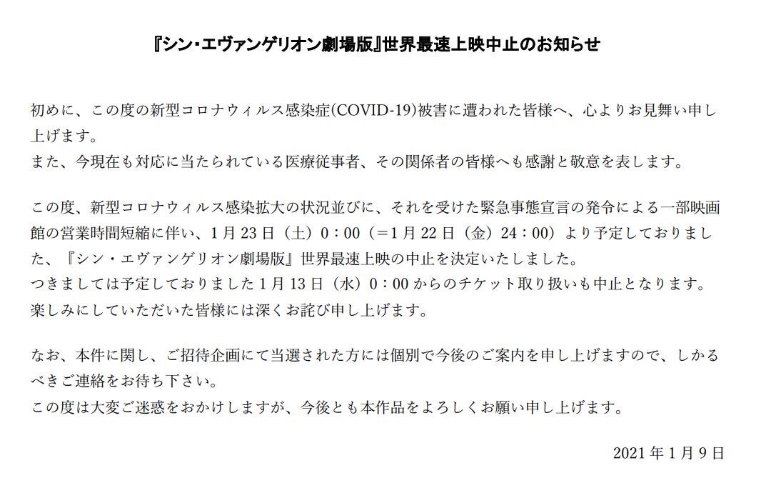 エヴァの映画、世界最速上映中止