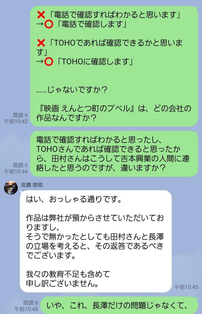 また、これらの投稿の以前には、吉本興業スタッフとのLINEのやり取りのスクリーンショットをアップ。
