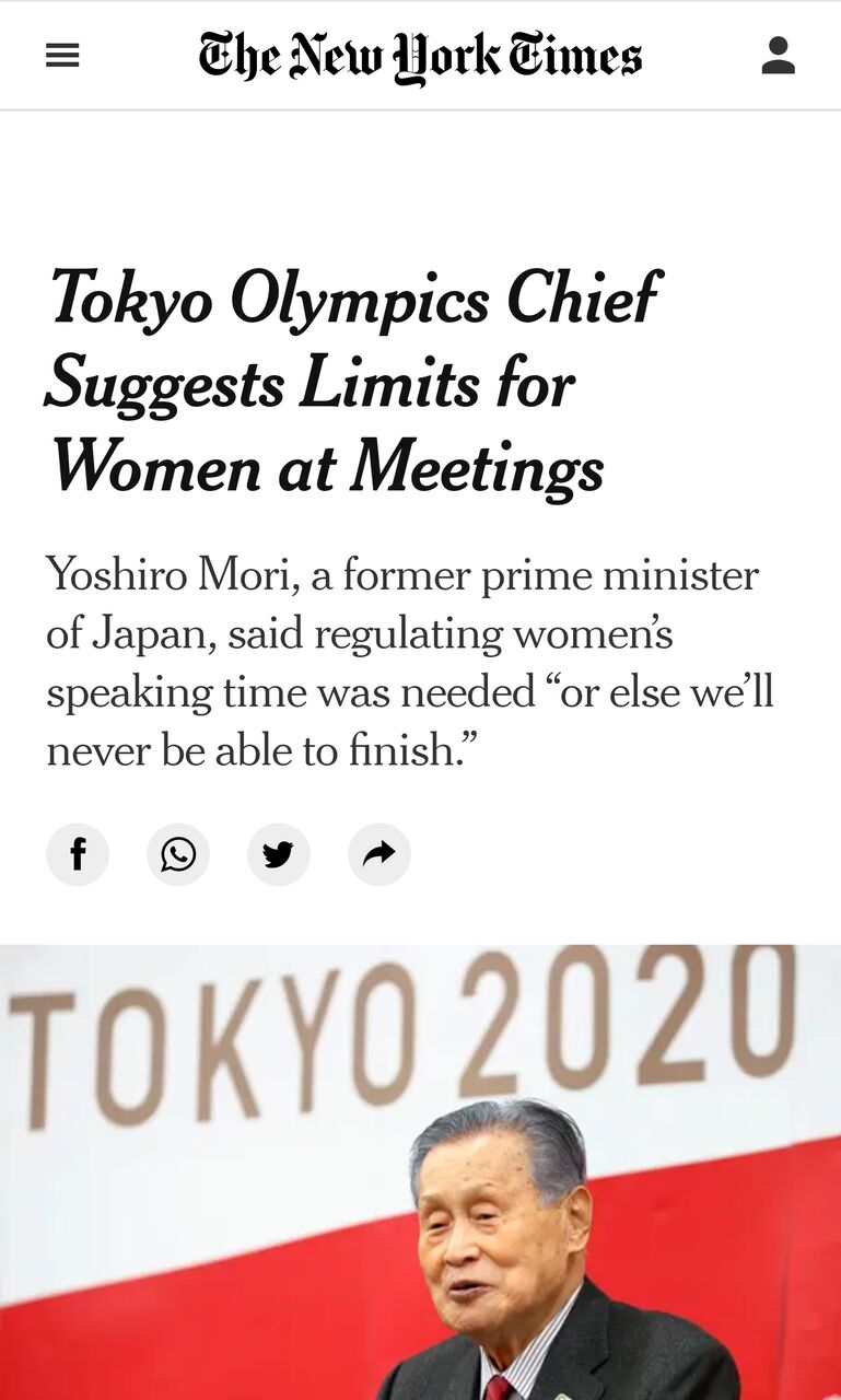 五輪組織委員会・森会長の女性制限発言をニューヨークタイムズが報じる