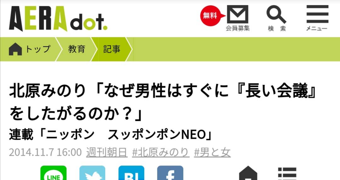 週刊朝日「なぜ男性はすぐに『長い会議』をしたがるのか?」