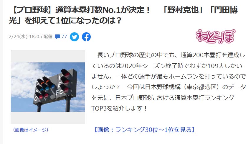 ライター「【プロ野球】通算本塁打数No.1が決定! 『野村克也』『門田博光』を抑えて1位になったのは?」