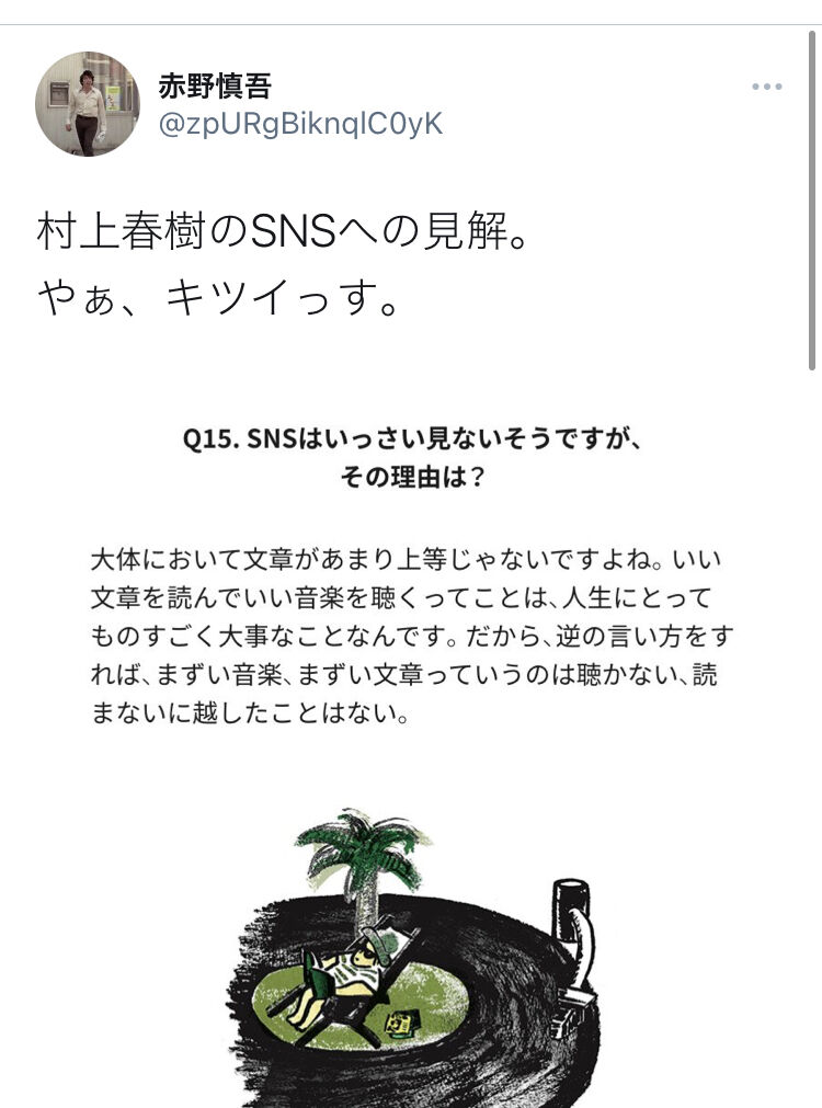 ツイ民さん、村上春樹のSNS観にブチ切れwwwww
