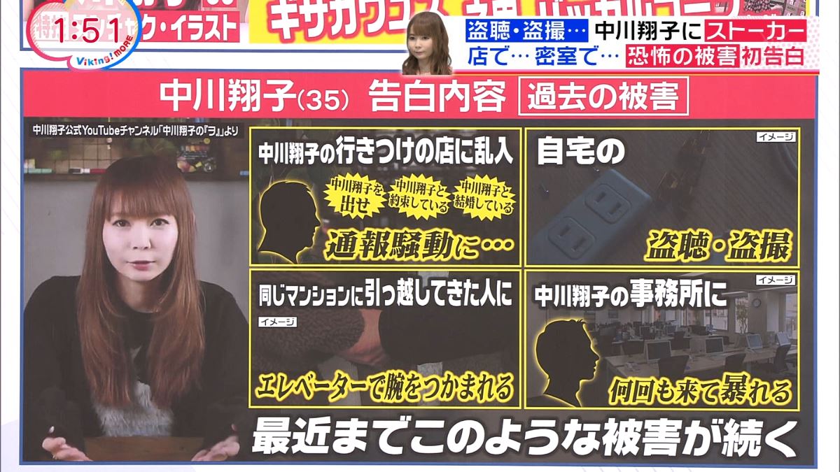 中川翔子さん、衝撃の告白 実はストーカー被害に遭っていた!