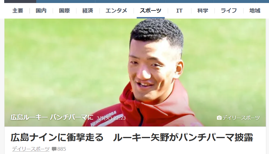 広島ルーキー矢野のパンチパーマが面白すぎるとワイの中で話題に