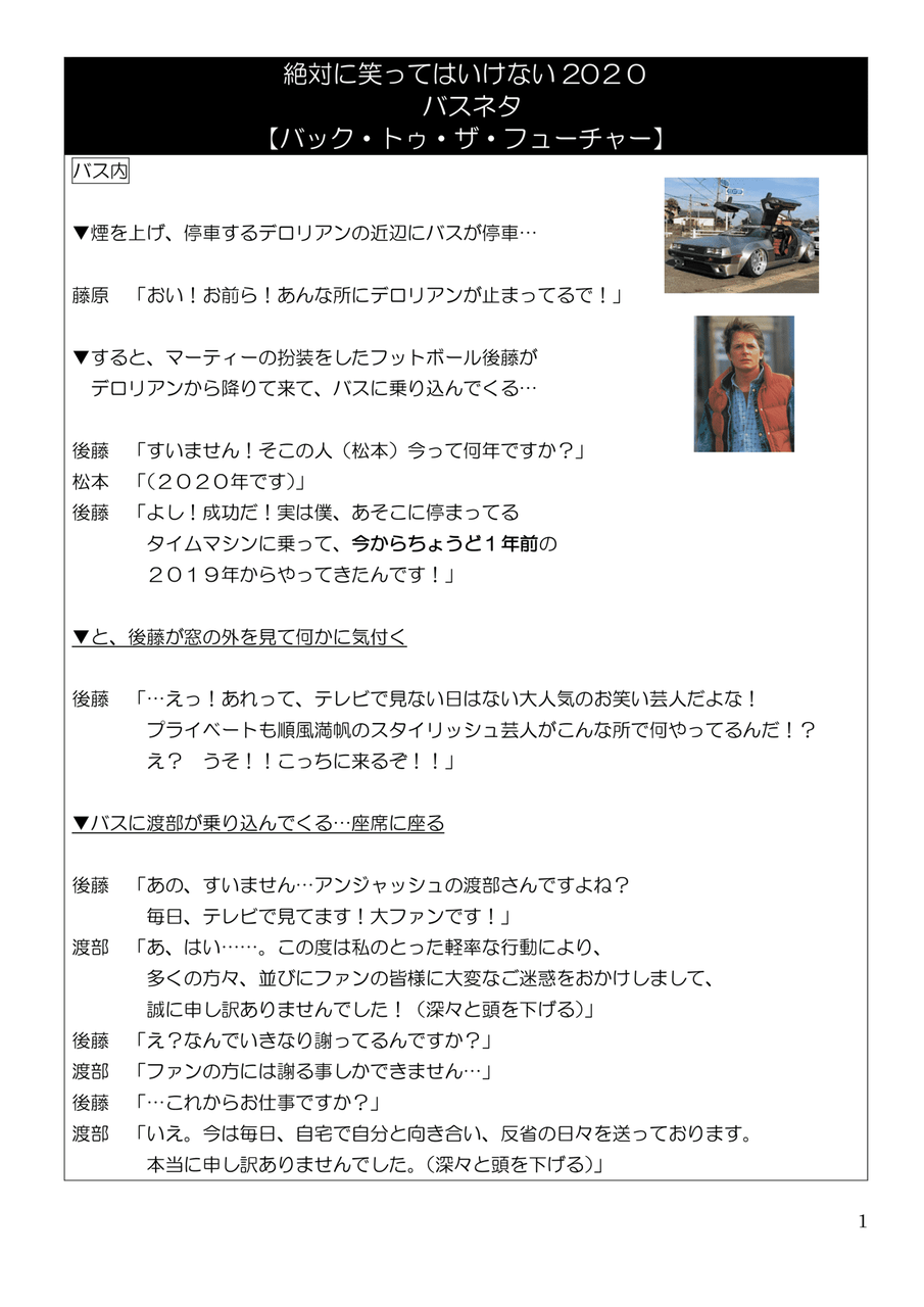 渡部出演シーンの『笑ってはいけない』台本が流出か