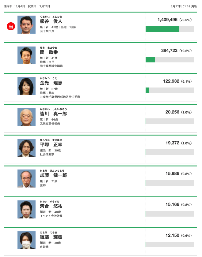 【悲報】後藤輝樹さん、千葉県知事選挙で得票数最下位
