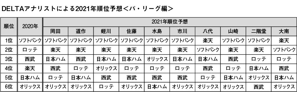 DELTAアナリストによる2021年順位予想 ~パ・リーグ編~ | 1.02 – Essence of Baseball | DELTA Inc.