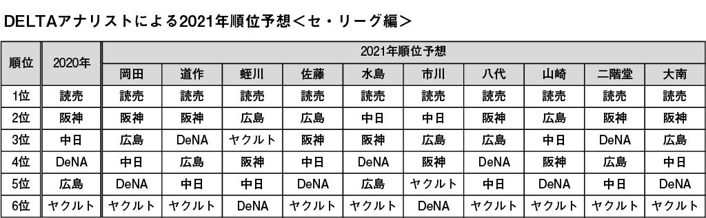 DELTAアナリストによる2021年順位予想 ~セ・リーグ編~ | 1.02 – Essence of Baseball | DELTA Inc.