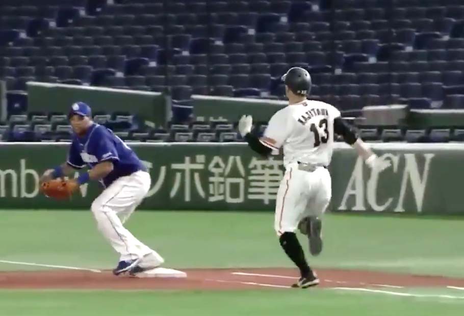 巨人・梶谷、仙タイキックをしてしまう【動画】