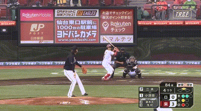 リプレー検証を終えて「観衆の妨害がありましたため、妨害がなければ捕球していたと判断されるためアウトとします」とアナウンス。小深田は左邪飛でアウトとなった。