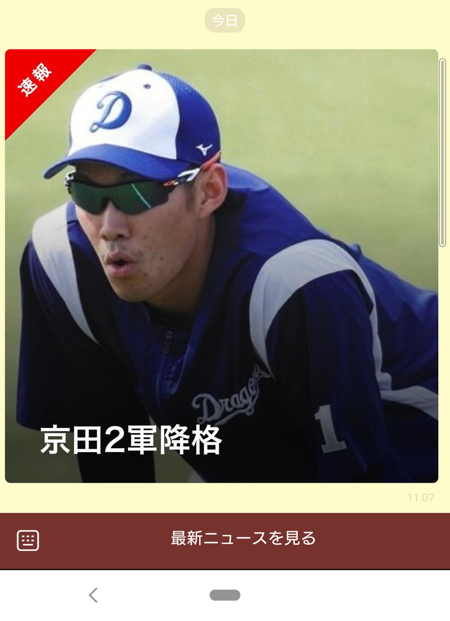京田は今季ここまで46試合に出場し、打率2割4分5厘、10打点だった。主に2番を務めたが、ここ3試合は三ツ俣にスタメンを譲っていた。