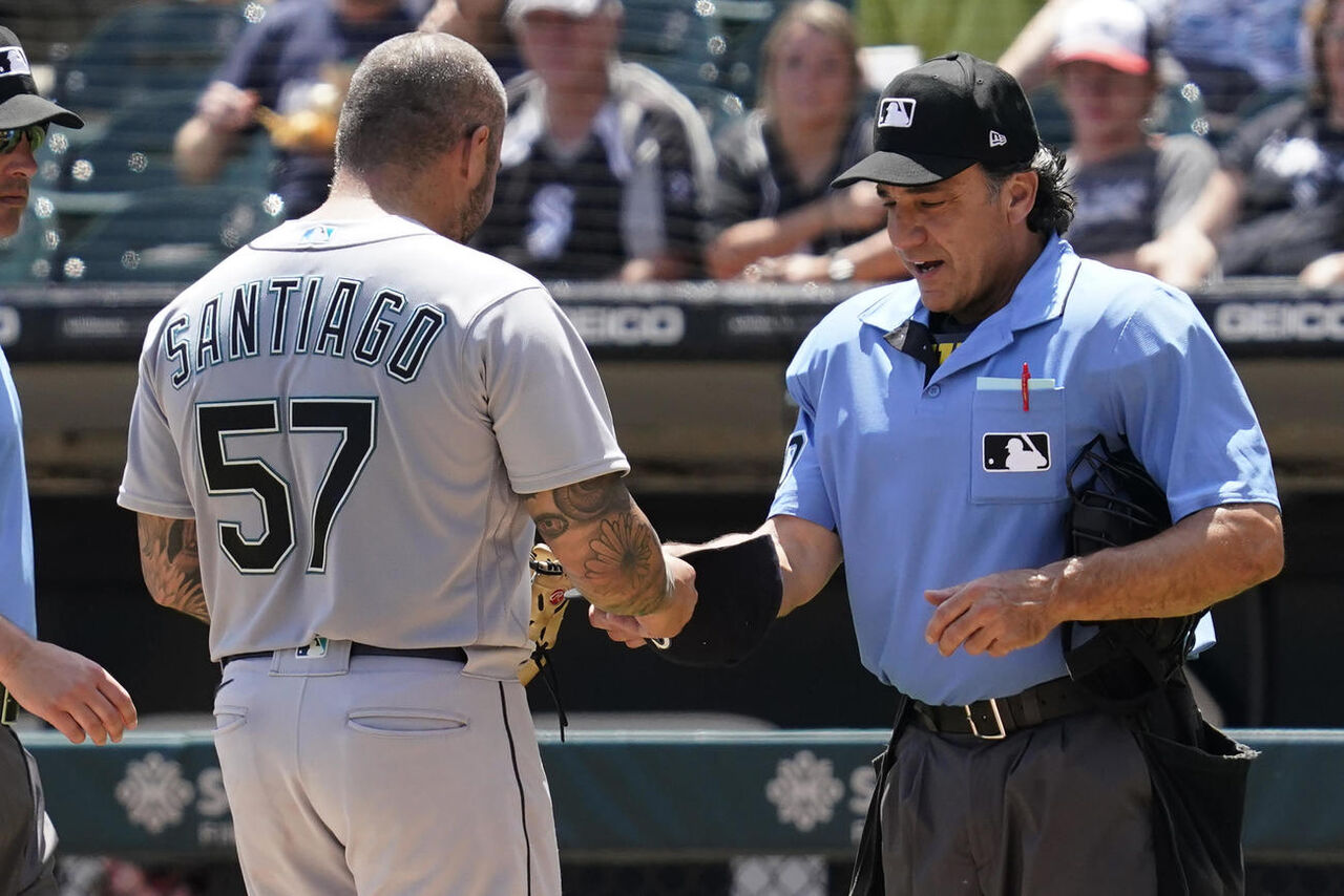 MLBで取り締まりが強化された投球時の粘着物質の不正使用で、初の摘発者が出た。マリナーズの救援左腕ヘクター・サンティアゴ(33)がホワイトソックスとのダブルヘッダー第1戦で、退場処分を受けた。