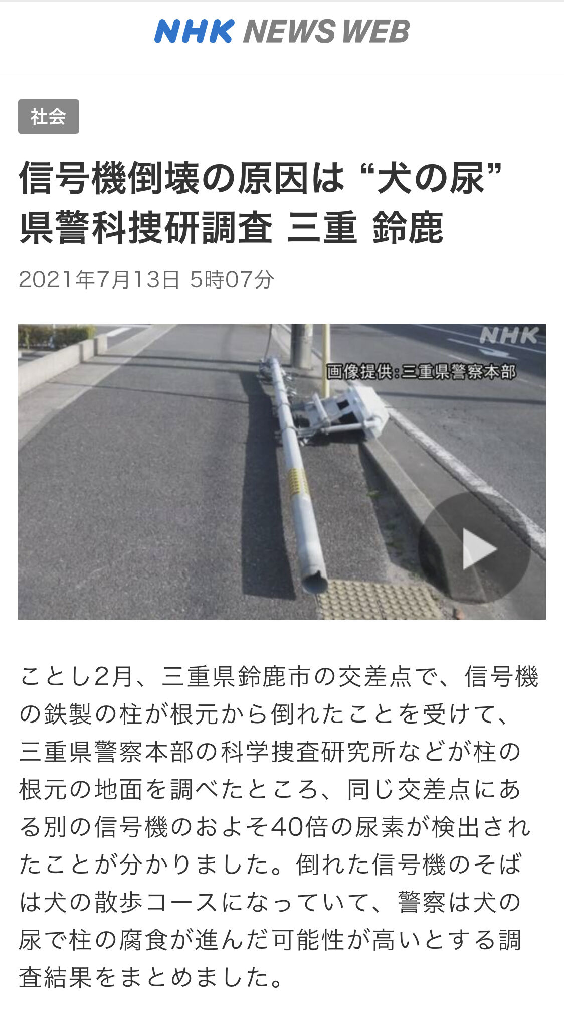 イッヌ「おっ柱やんけ! マーキングしたろ!w」→ 信号機が倒壊