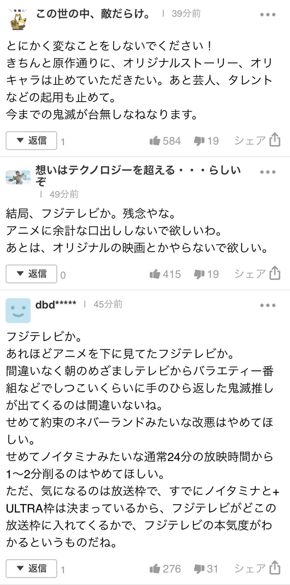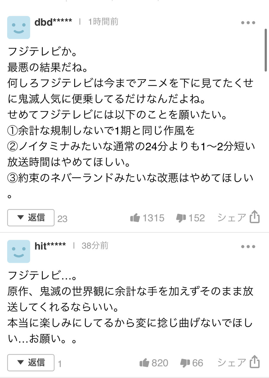 鬼滅の刃の2期がフジテレビで決定してヤフコメ民絶望www