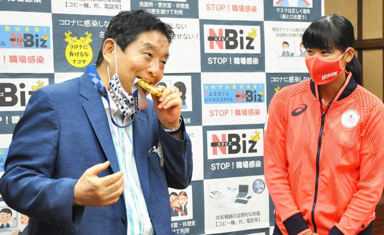 この際、河村市長がマスクを外し、後藤選手の金メダルを突然「がぶり」とかんだため、テレビニュースで知った人々から抗議が殺到。電話やメールで「コロナ対策が求められる中で、唾液をつけるとは何事か」「無礼、失礼」「気持ちが悪い」などと午後5時半までに約50件の抗議や苦情が市役所に寄せられた。市の担当者は「想定していない出来事」と困惑。河村市長は「最大の愛情表現だった。金メダル獲得はあこがれだった。迷惑を掛けているのであれば、ごめんなさい」とコメントした。