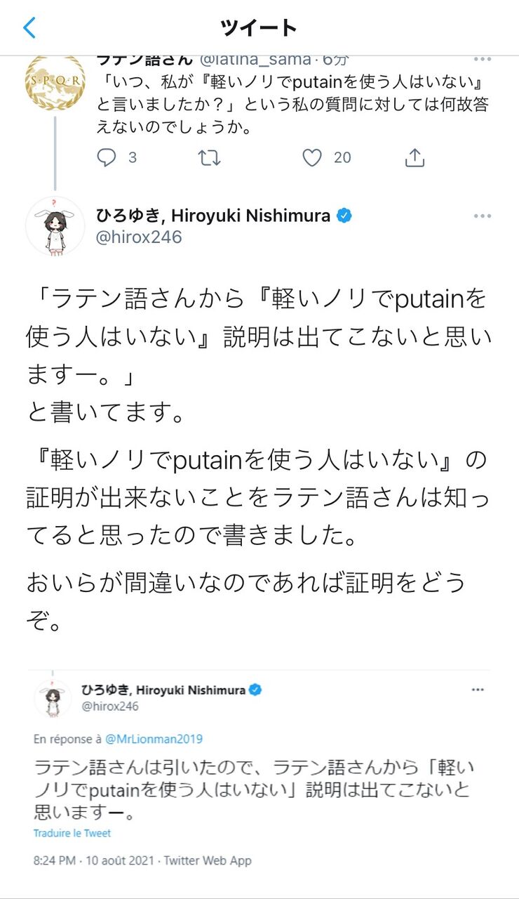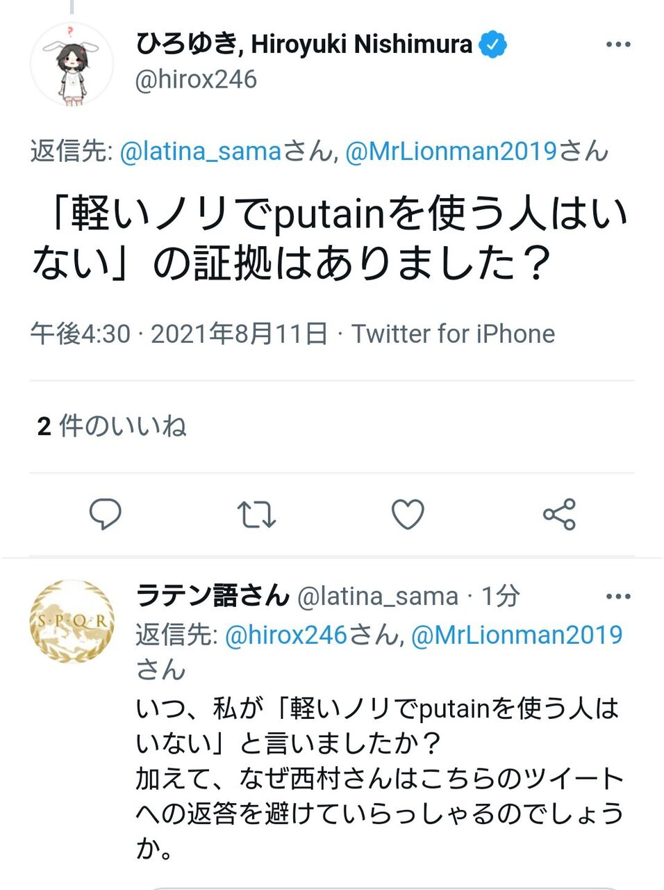ひろゆき「ラテン語さんの主張は軽いノリでピュータンを使う人はいないということですね?証拠出してください」