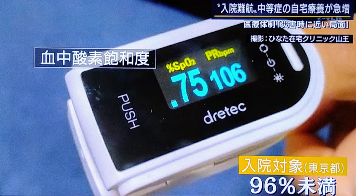 東京さん、ついに酸素飽和度75%で自宅療養する猛者現る