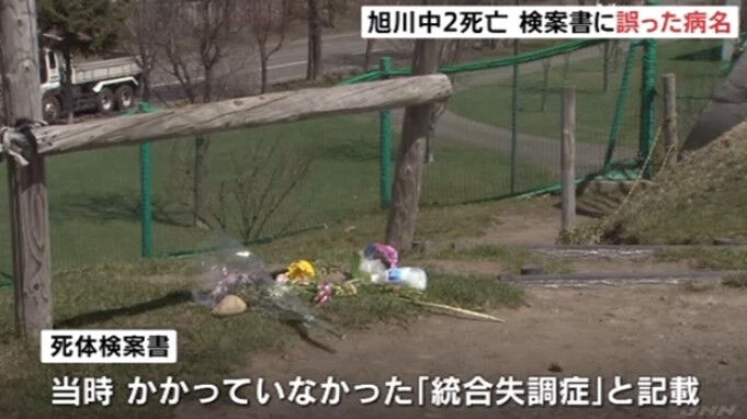 北海道旭川市で3月、中学2年の女子生徒が凍死しているのが見つかった問題で、実際はかかっていなかった精神疾患名が死体検案書の一部に記入されていたことが20日、関係者への取材で分かった。道警の誤った情報を基に医師が書いたとみられる。