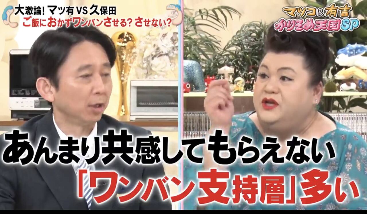 【悲報】マツコ有吉「おかずをご飯にワンバンさせるな、汚い」