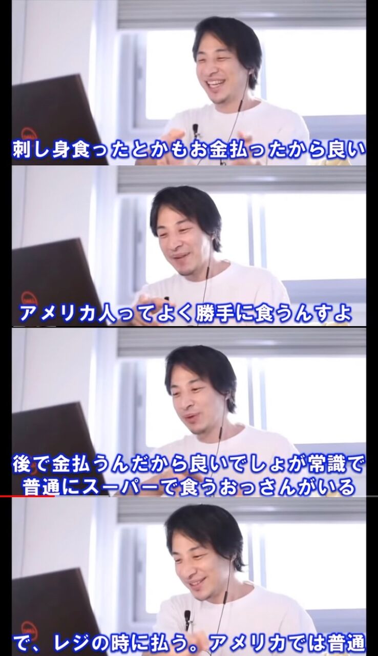 【悲報】ひろゆき「アメリカでは普通に会計前に食ったりする」