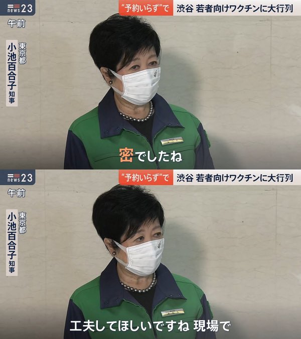 【悲報】小池百合子「若者向け接種会場が密?はあ…現場で工夫して欲しいですね😧」