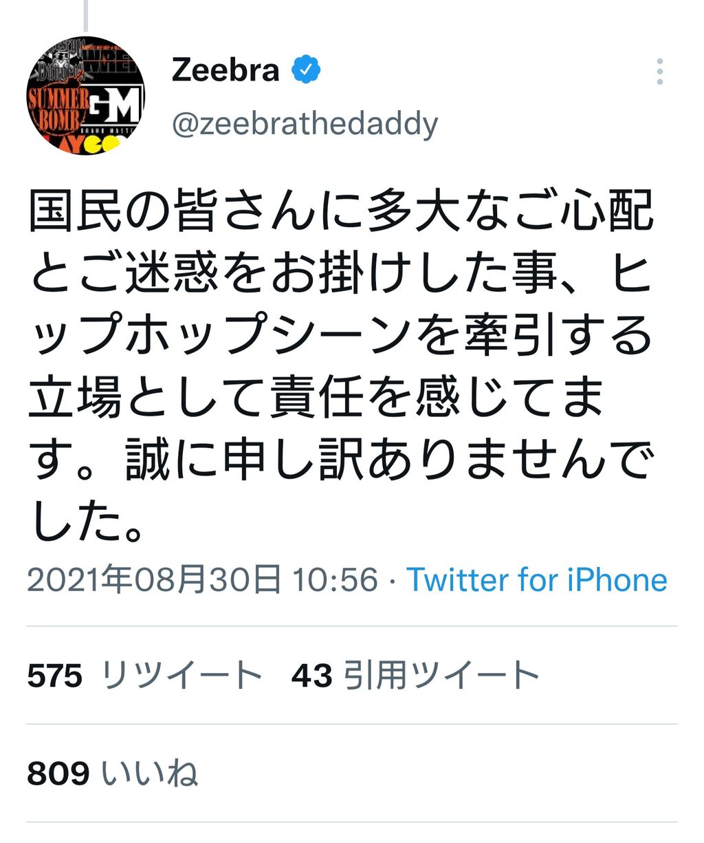 ZEEBRAさん、昨日の音楽フェス出演をヒップホップ界を牽引する立場から謝罪