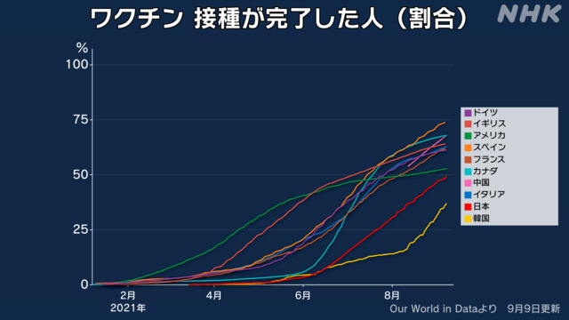 日本、ワクチン摂取率がアメリカを越えそうwwwww