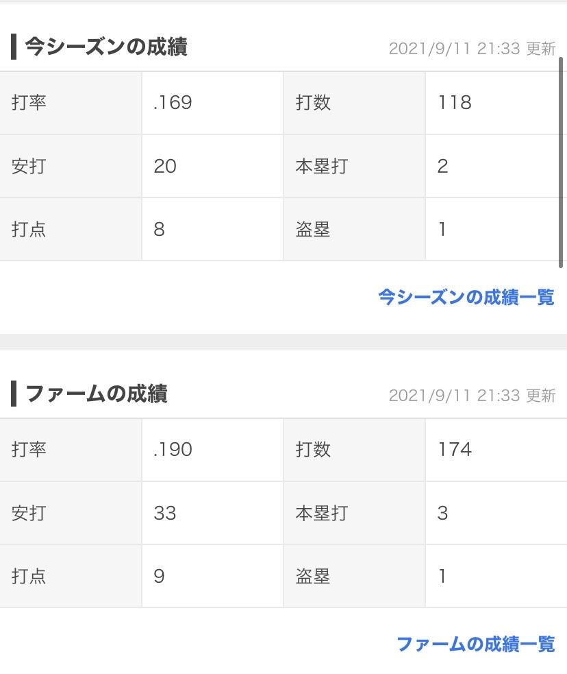 2021年9月12日の出場選手登録、登録抹消(11:00現在)