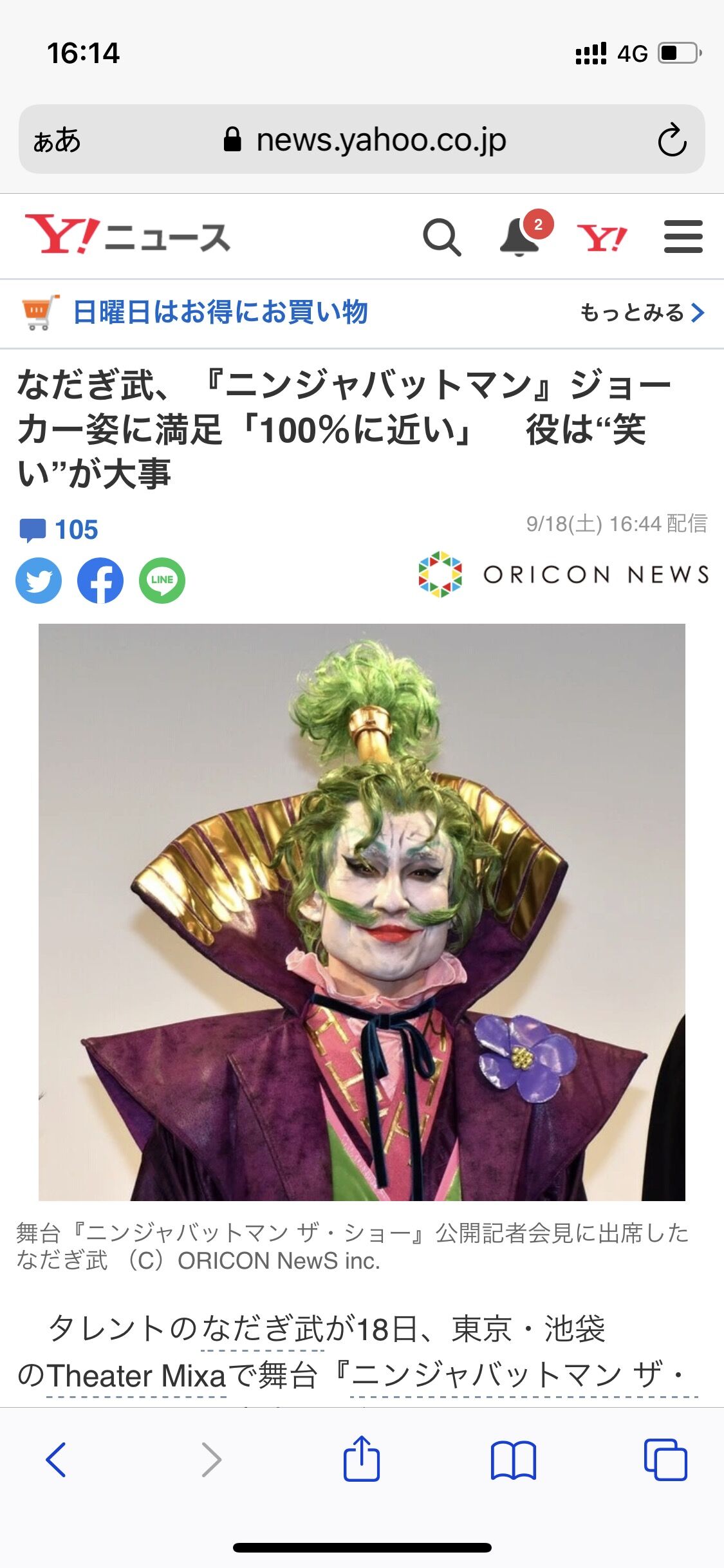 【朗報】なだぎ武さん(代表作:五輪開会式)、今度はジョーカーを演じる