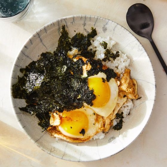 同紙の公式インスタグラムは18日、白いごはんの上に刻みのりと目玉焼きをのせた料理の写真を投稿し、「Gyeran bap(卵ごはん)」と紹介した。