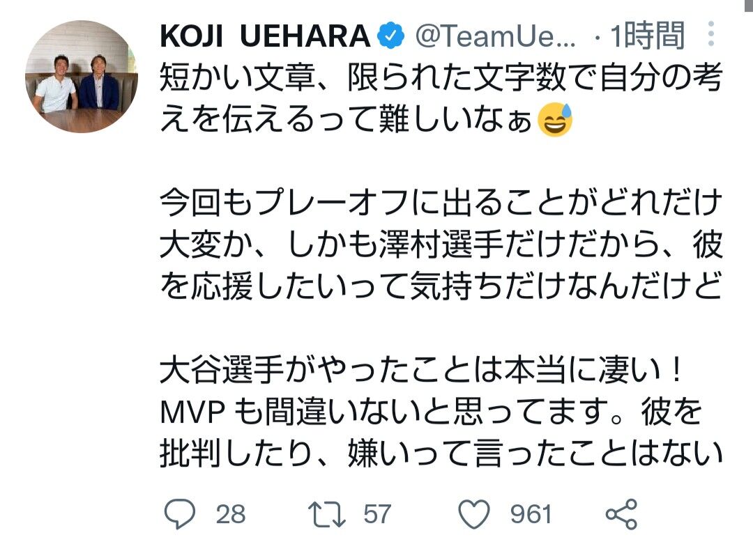 【悲報】上原浩治さん、昨日のツイートについて釈明するもやっぱり余計な事を言ってしまう