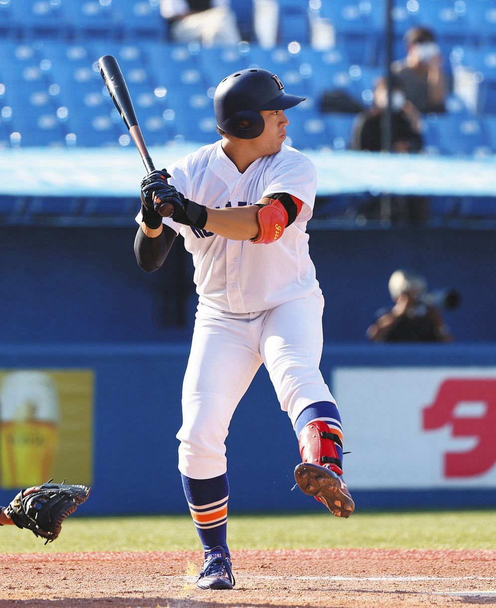 フルスイングで見る人を引きつける。今秋のドラフト指名候補の駒大の鵜飼航丞外野手(22)=中京大中京=が4日、東都大学野球秋季リーグの国学院大戦(神宮)に「4番・指名打者」で出場。竜スカウトが「飛距離は阪神の佐藤輝にひけをとらない」と語るロマン砲は3打数無安打だったが、プロの評価は揺るがないようだ。