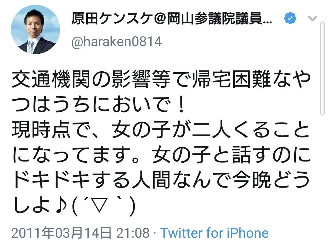 立憲民主党議員さん「帰宅困難な女の子二人がうちに来るドキドキ。もっとおいで」